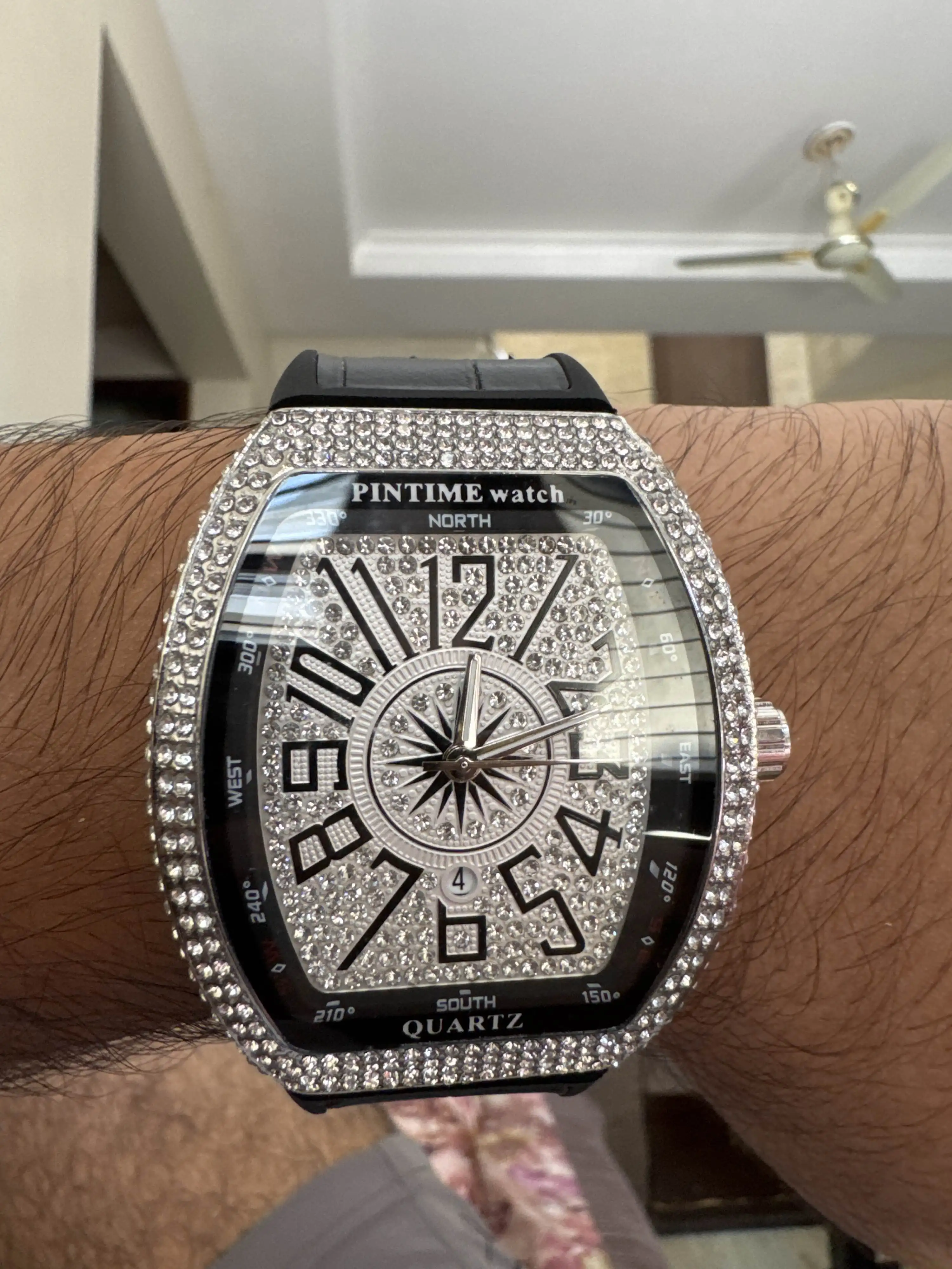 PINTIME Men's Retro Quartz Wristwatch Barrel Design Luxury Alloy Glass Leather Strap Diamond Inlaid Yacht Charm Hangzhou