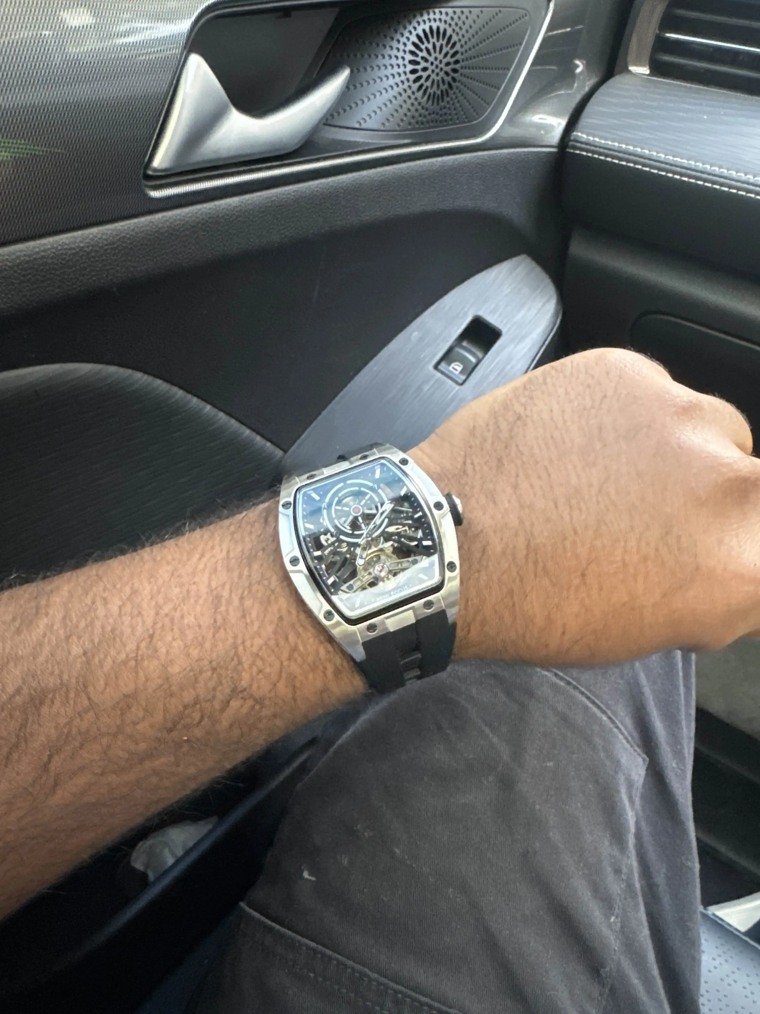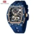 Reloj de pulsera informal Tonneau único para hombre con banda de silicona suave reloj deportivo analógico hueco