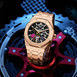 OEM ODM nuevo popular de los hombres de lujo de moda reloj de pulsera de esqueleto de acero inoxidable a prueba de agua automático relojes mecánicos